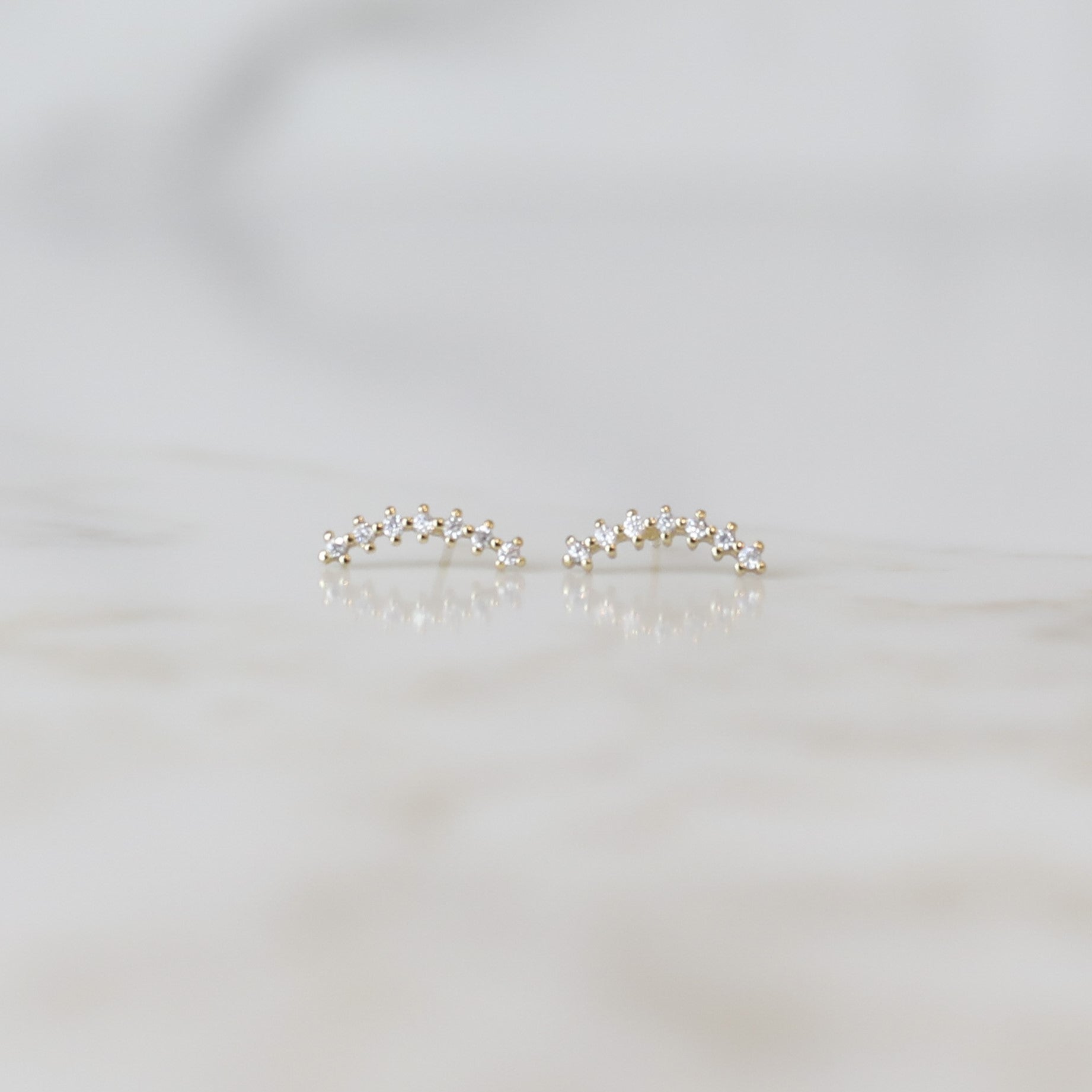 Ear climbers are the best earring option when you want the look of more!  Our Arch Ear Climbers are beautiful cubic zirconia stones in the shape of an arch for the ultimate sparkly look!