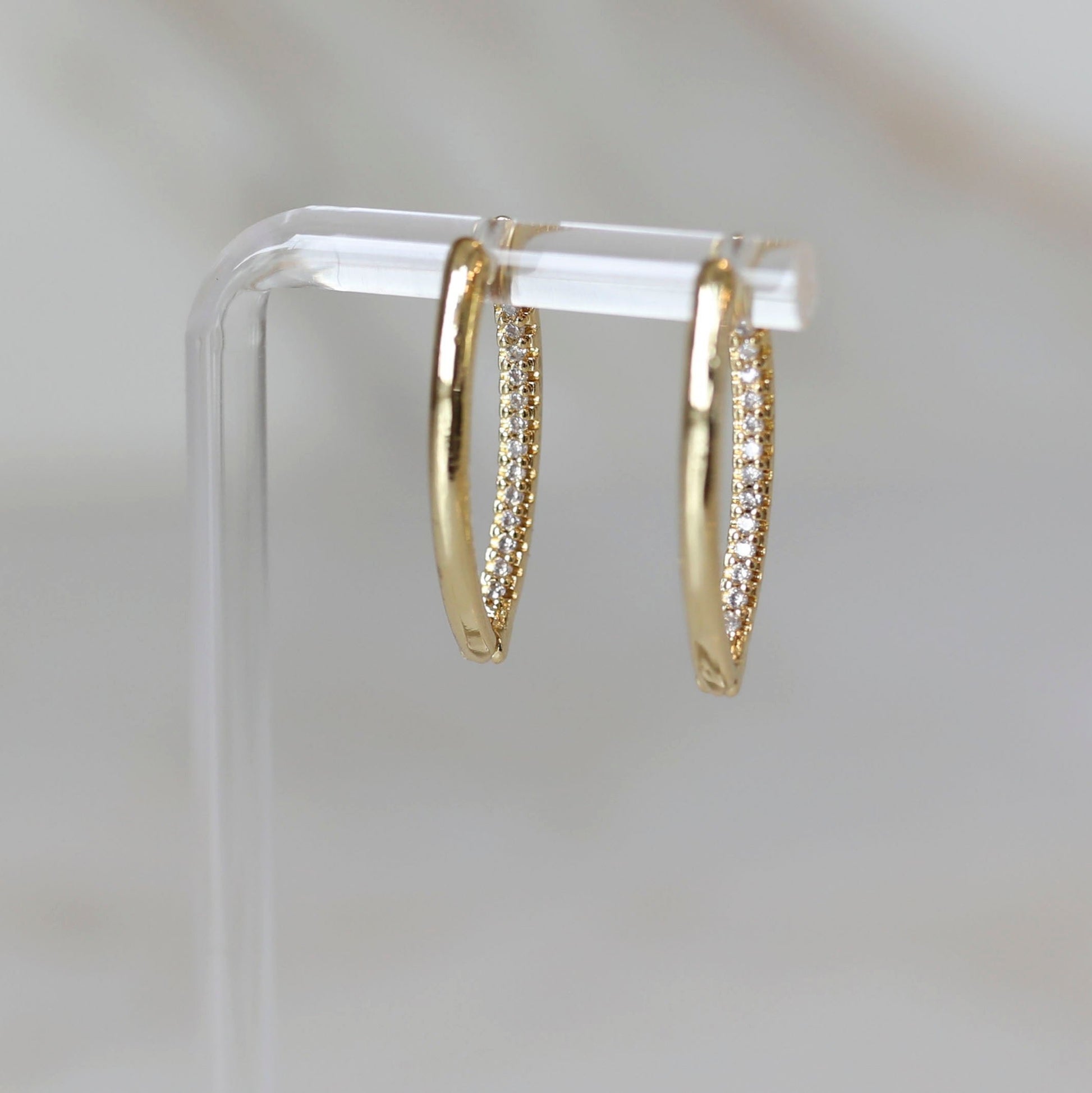 Our Arch Hoops have sleek design with an added touch of pave CZ on the inside of the hoop to give it a totally different look! These hoops are light weight and perfect for any outfit or holiday occasion!