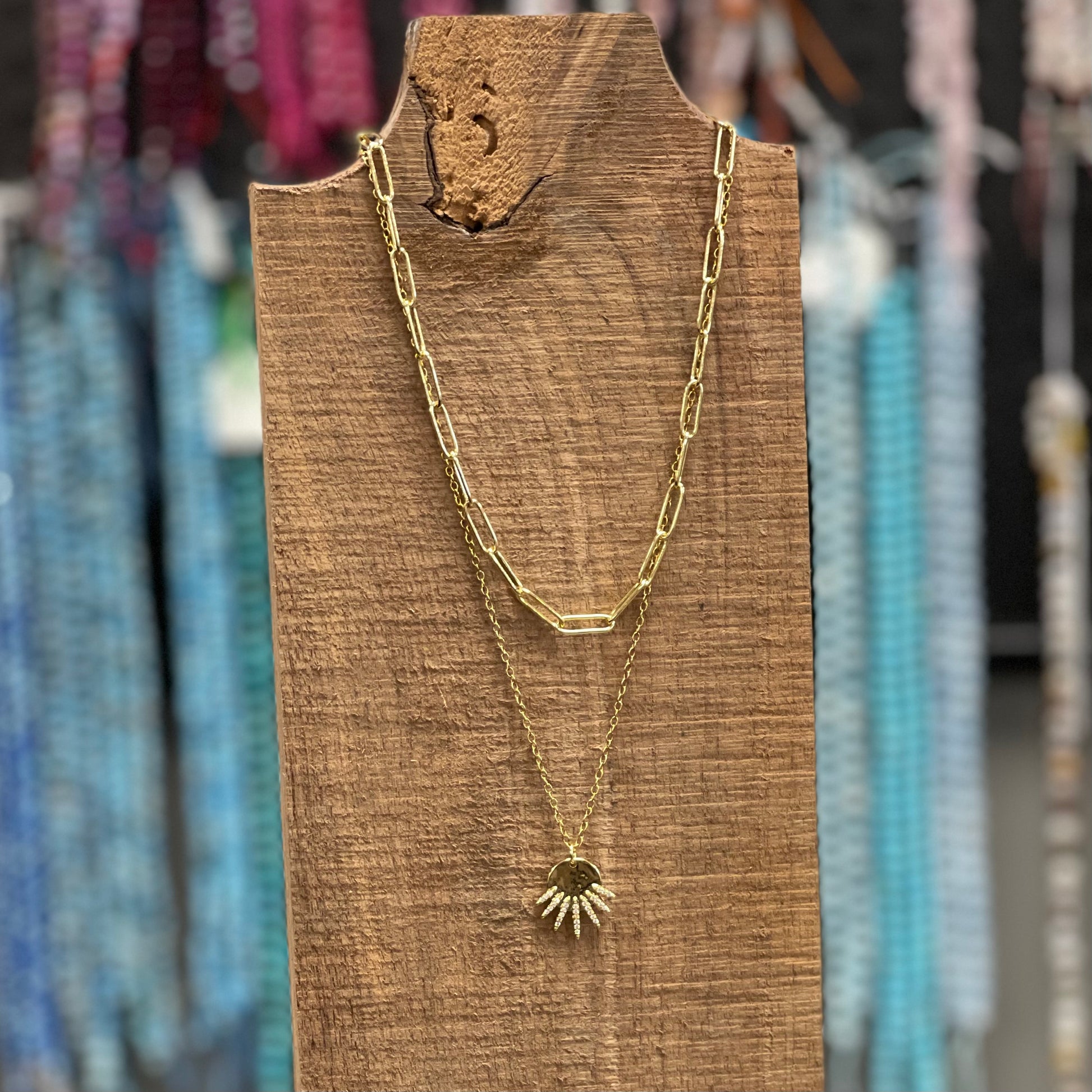 A Cubic Zirconia Pave pendant is the focal to your newest layering necklace! This pairs perfectly with our Chain Link necklace.