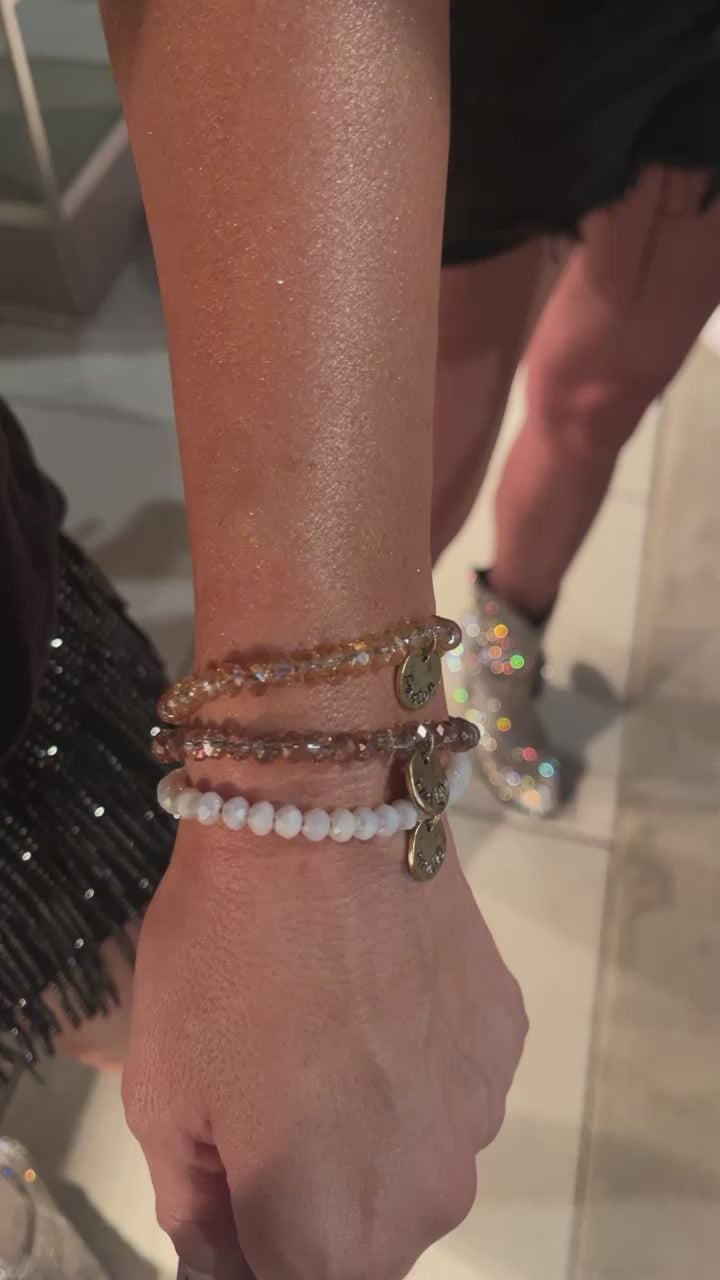 *Elastic stack bracelets are made with 6mm faceted crystals