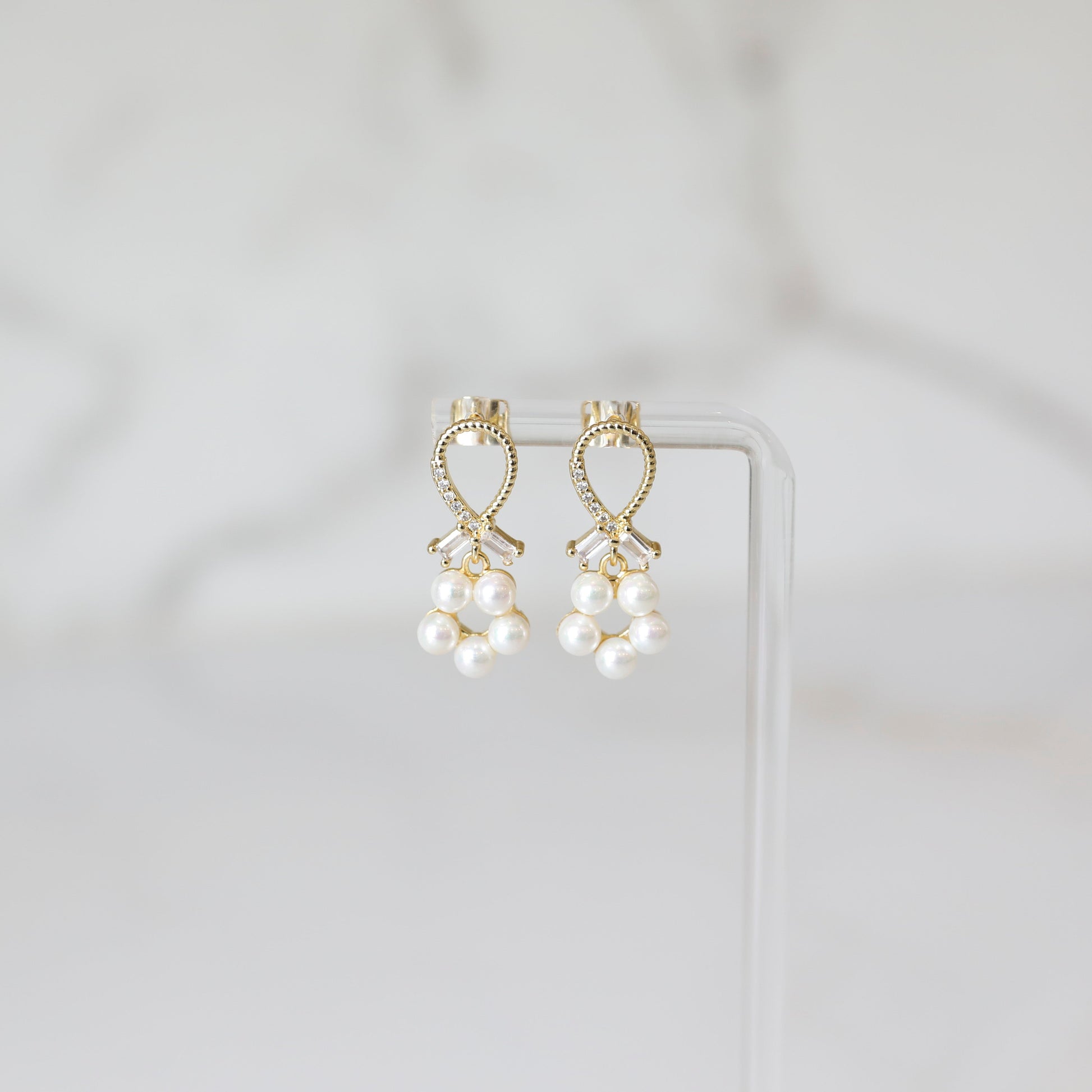 Extra Extra grab these fabulous earrings while they last!  The Faceted Pearl Drop Studs will add that extra WOW factor to your jewelry collection!  A gold drop-style earring featuring a ribbon-shaped top embellished with cubic zirconia gems and rope-like texture, with a circular cluster of pearl beads below.  These earrings are just too much pure goodness with amazing details!  The perfect earring for your evening out!