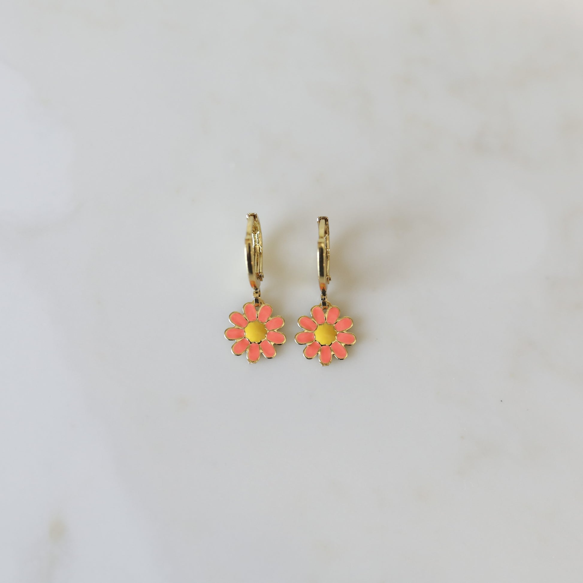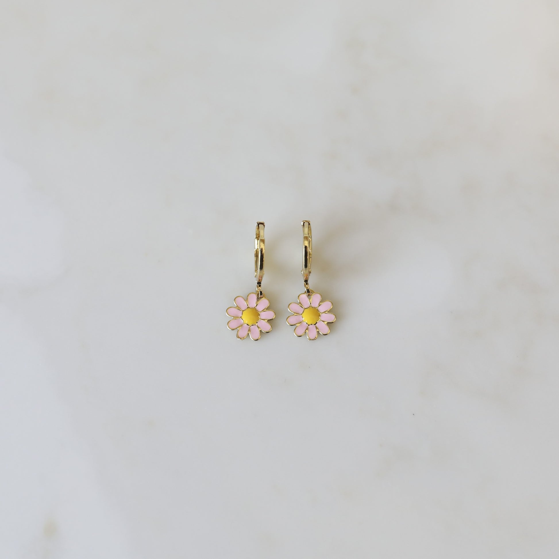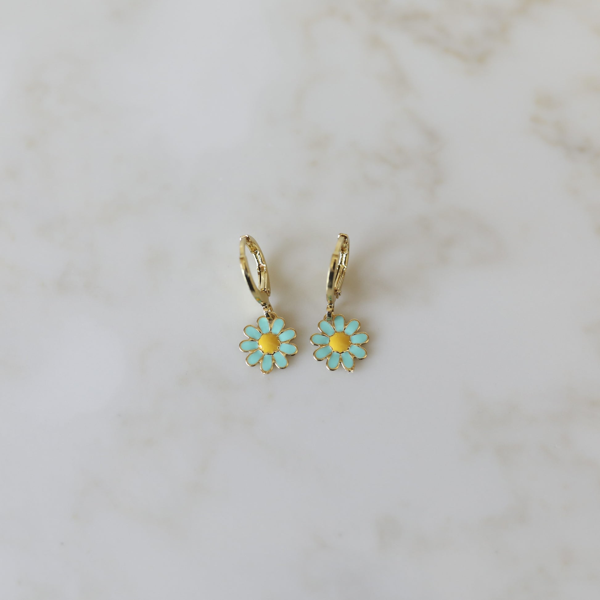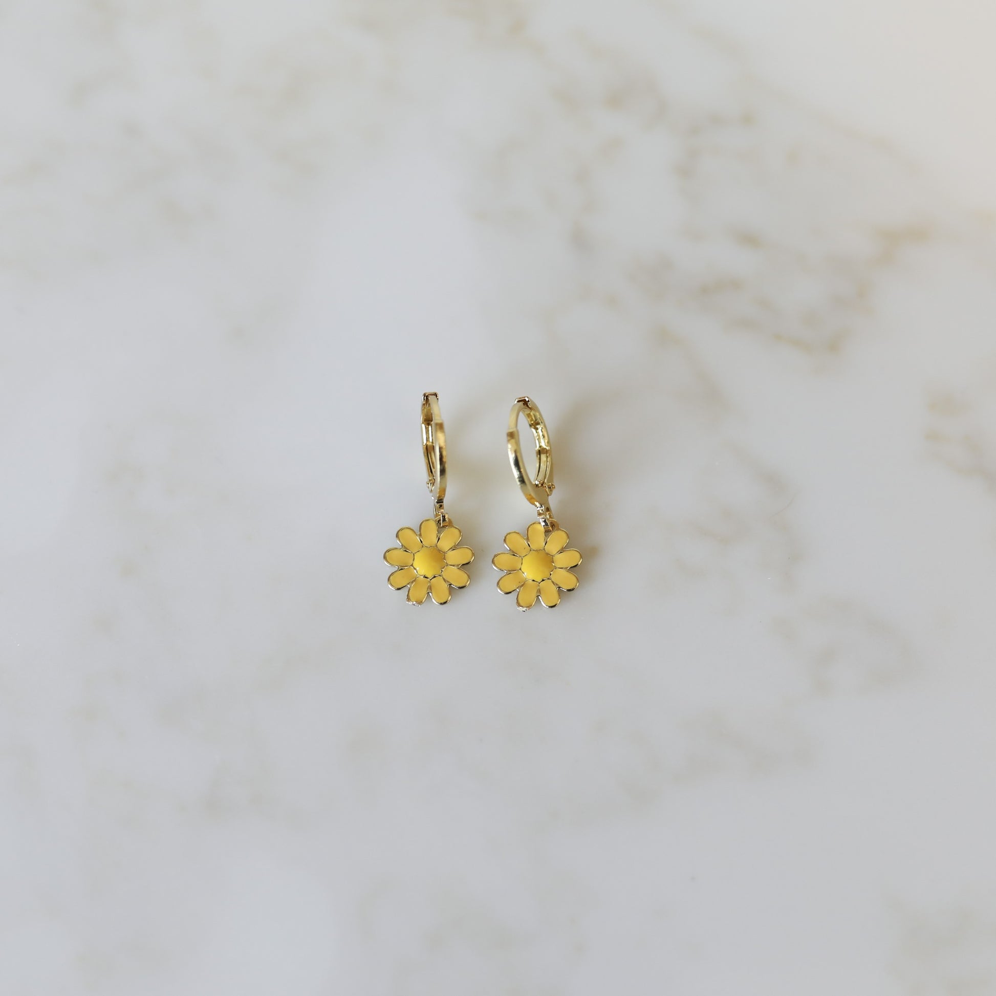 Flower power!  The Mini Daisy Hoop Earrings are the perfect addition to our Daisy Charm Necklace!  And these super lightweight hoops will be the perfect finishing touch to your Fiesta Friday getup!  Cute little daisy enamel charms dangling from a comfortable hoop clasp.