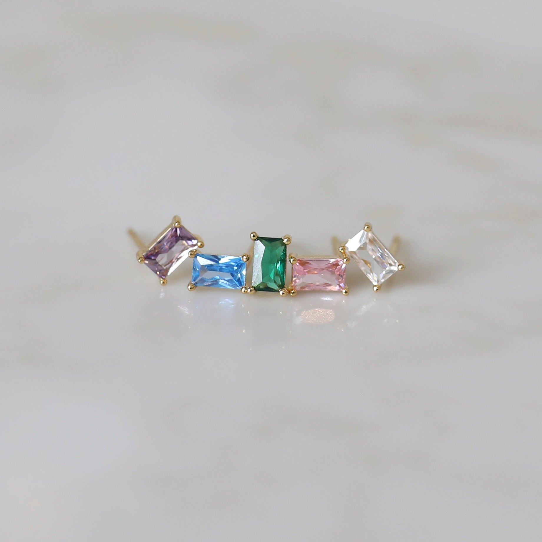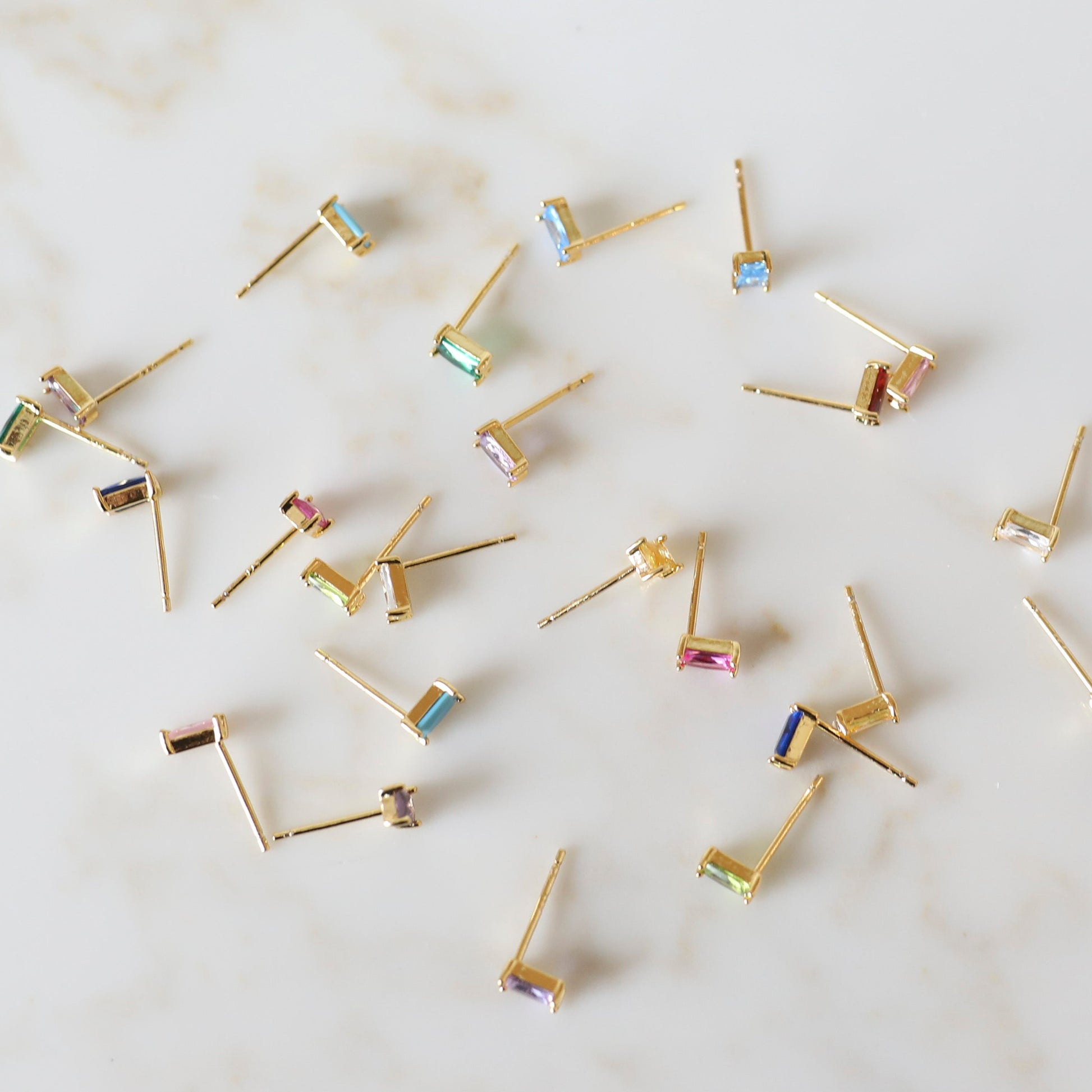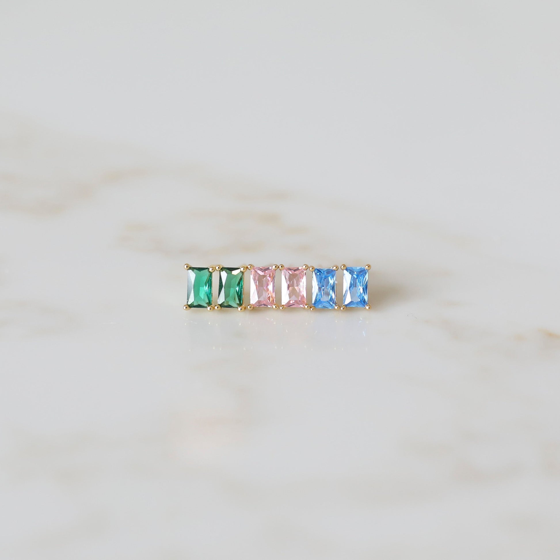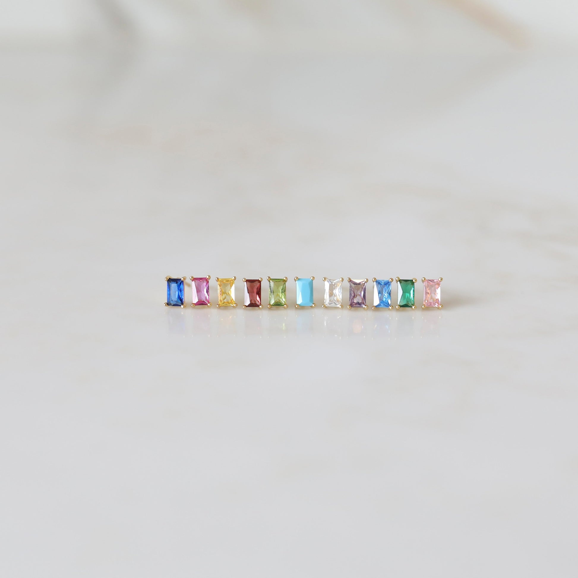 Show off a special month of the year with our Rectangle Birthstone Stud Earrings!  These dainty earrings are the perfect size, and each color gemstone is sparkly making it the perfect pop of color!  These earrings are perfect to wear solo or wear them in your second or third hole and pair them with some of our trendy hoop earrings!