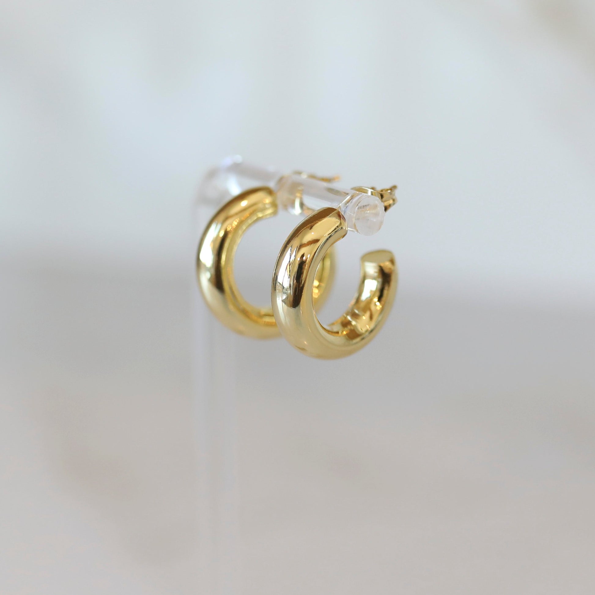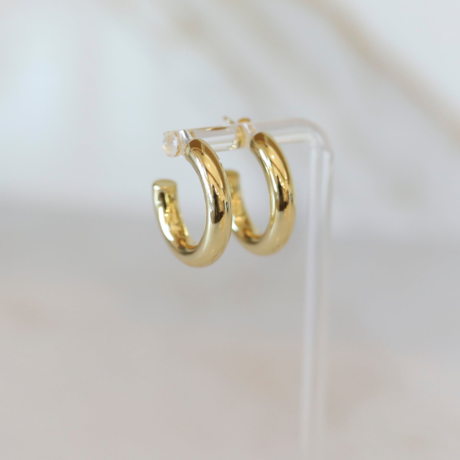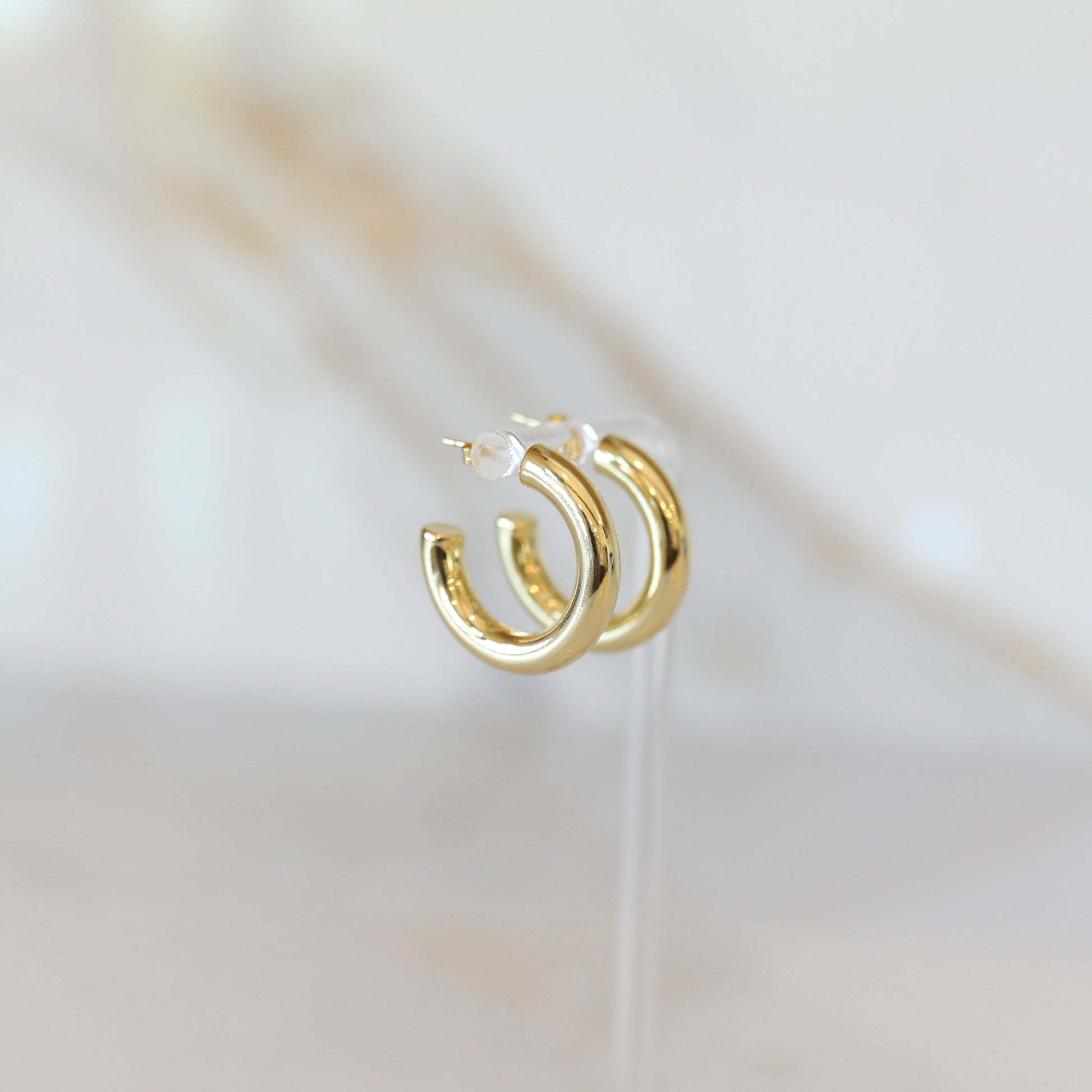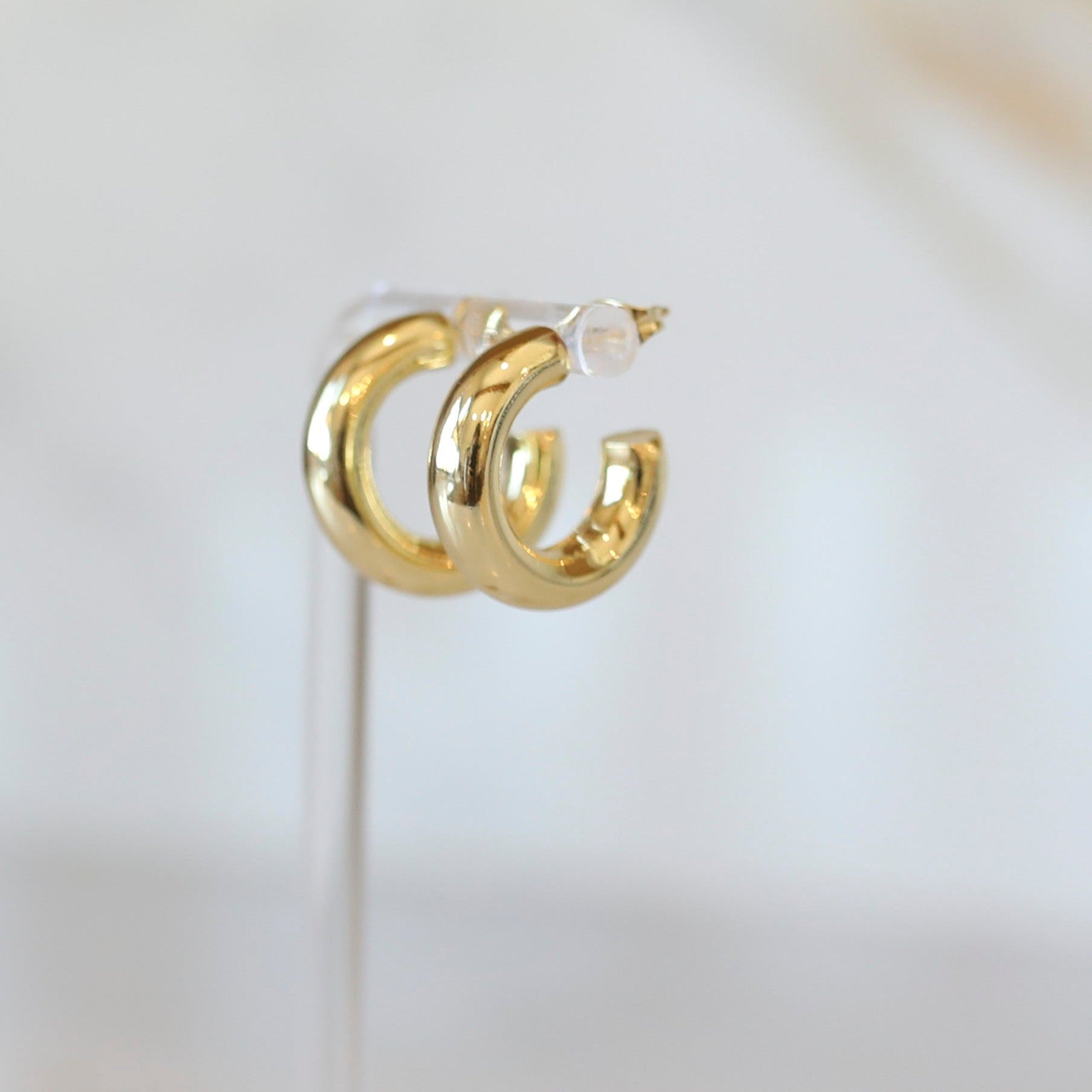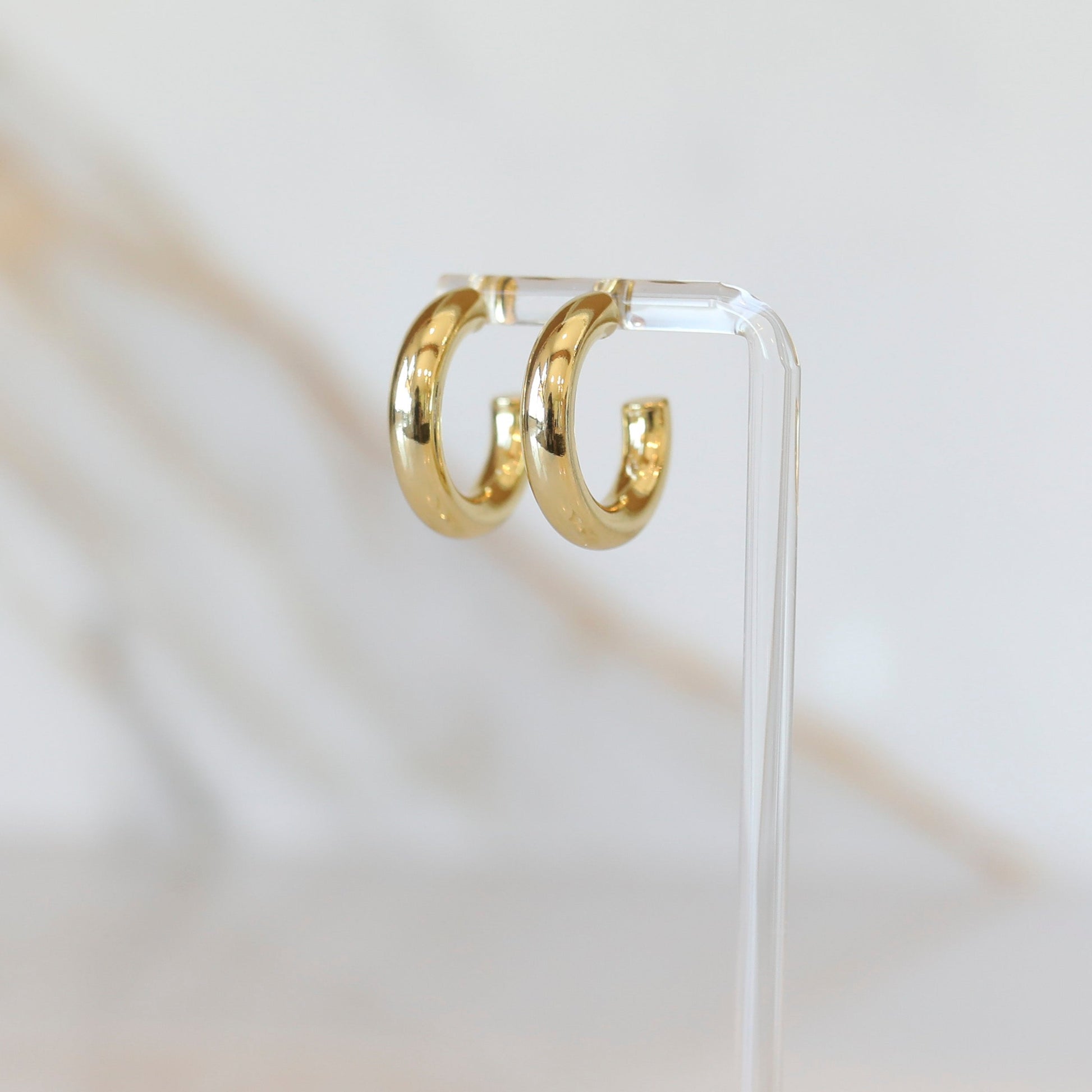 Make a statement with the Thick Basic Hoop earrings that are anything but basic!  These standout earrings are available in two sizes, and you will want to have both in your collection.  We love pairing these earrings with a simple jeans and t-shirt outfit, but you can have these earrings give your LBD some glam!