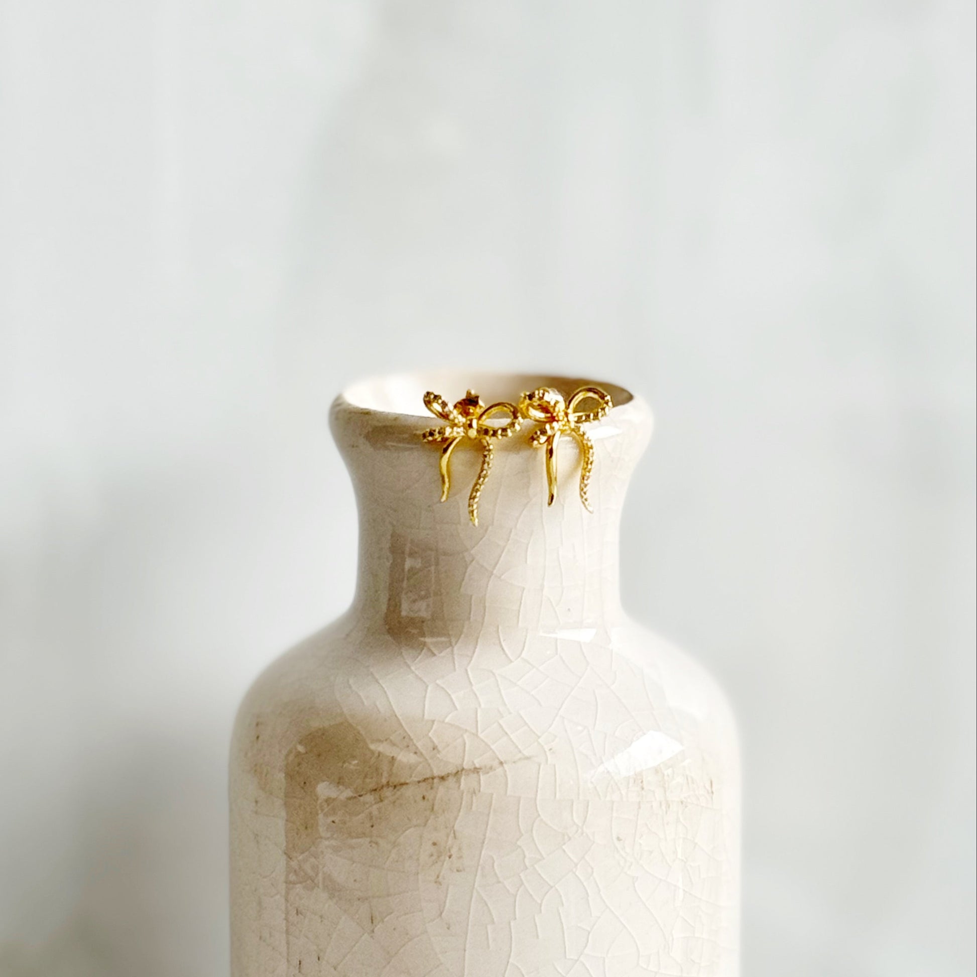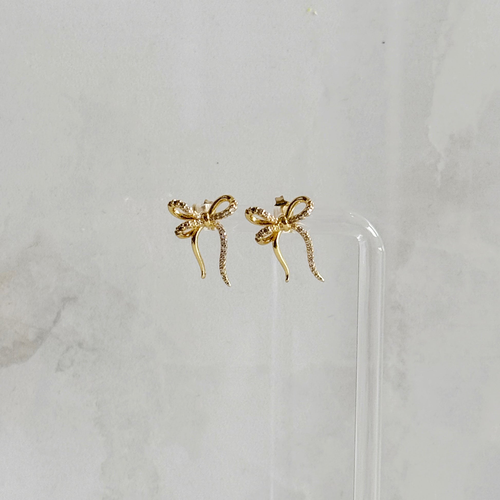 The sweetest accessory elevated!  Our Thin CZ Bow Stud earrings put a sparkly twist on this now trendy shape.  These stud earrings are a bow silhouette accented with cubic zirconia gems that can easily dress up any outfit.  Wear these by themselves or pair them with cubic zirconia stud earrings for an even more sparkly look!